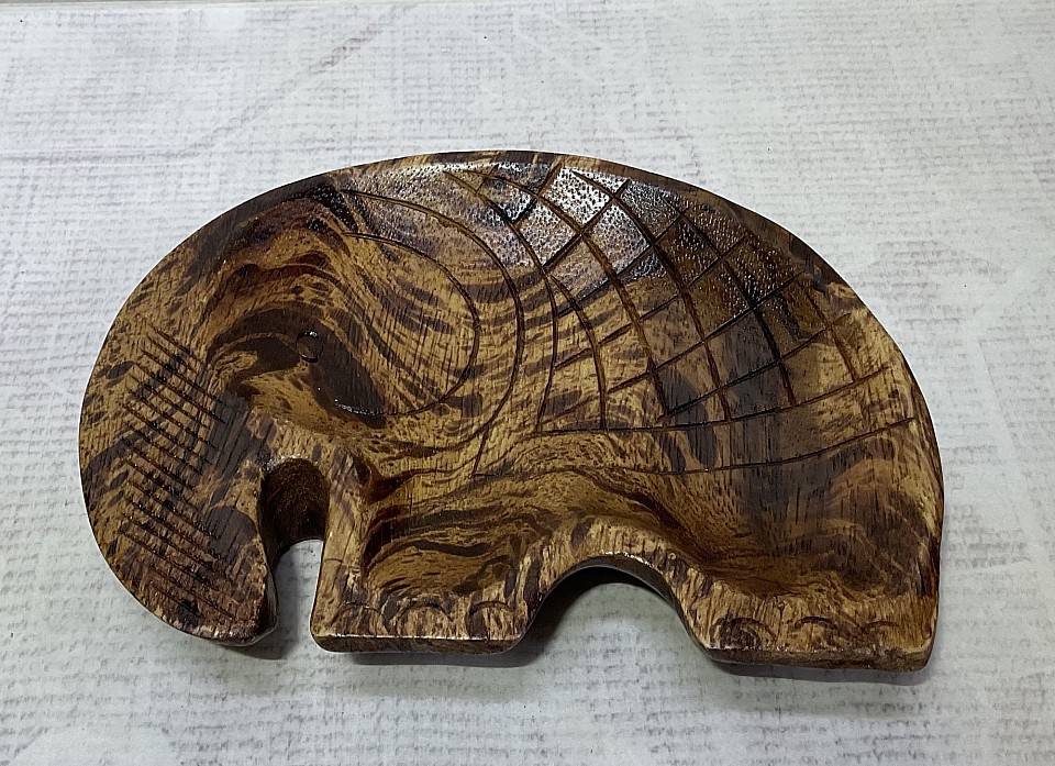 Item # MWT- E 1 Monkey wood Elephant Tray @ 21cm x 15cm in size. The painted style in the Photo is our Brown/ Black " free style pattern" These can be order in different colors also ( qty Minimums apply )