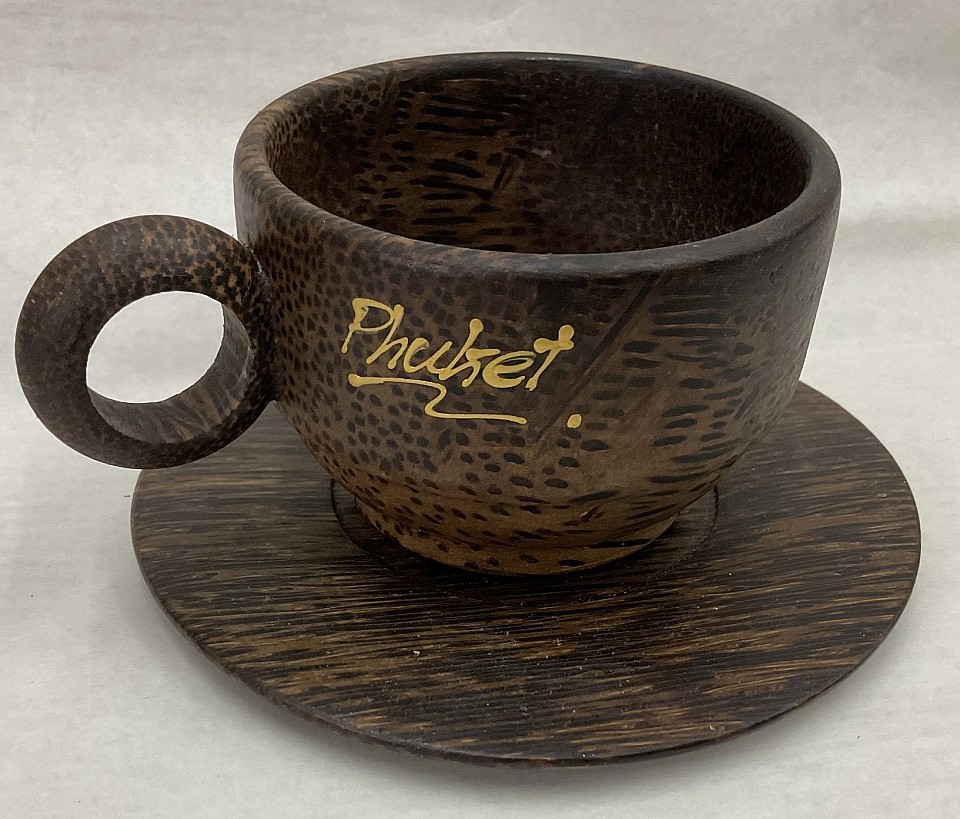 Welcome to our collection of fine handcrafted palm wood Cups and Trays. These pieces are crafted for us by artisans in rural Thailand. These are very popular items with our customers throughout the beach resorts both in Thailand and around the world. They can be ordered with or without your store's location. As in Thailand, Phuket, Maldives, Spain Etc. There are some samples in some of the below photos . Please note that the sizing, Wood coloring and the wood texture on some styles may vary some as they are hand made.